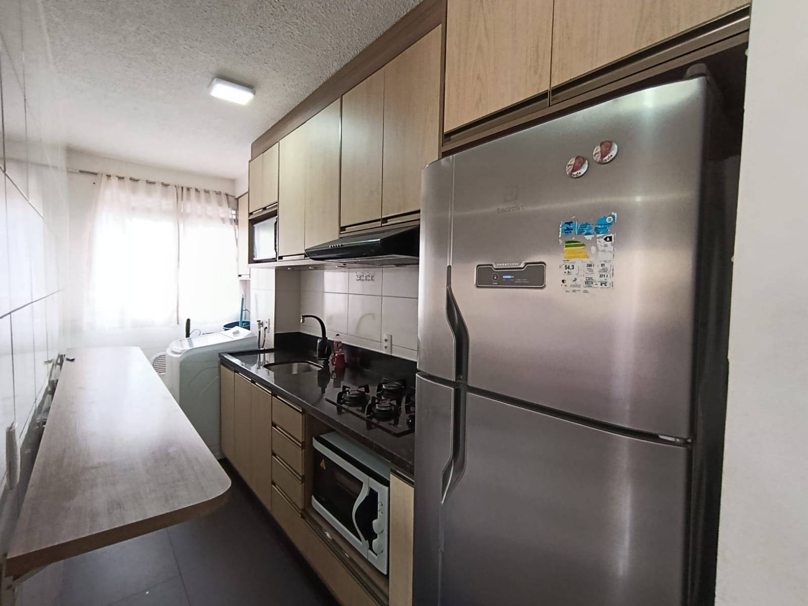3856 - Apartamento bairro Jaraguá Esquerdo Área privativa de 44,32m² 02 Quartos Cozinha Área de serviços Sala de estar e jantar integrados Sacada com churrasqueira 01 Banheiro social 01 Vaga de garagem Prédio com elevador Salão de festas Playground Piscina